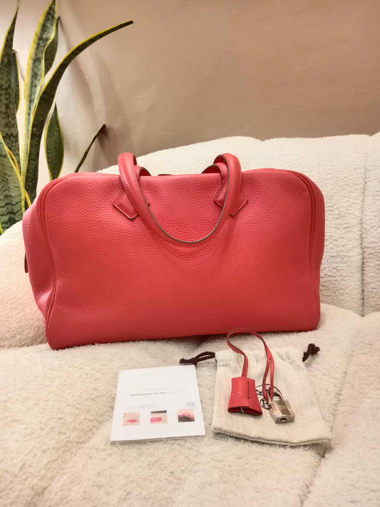 Hermes Victoria 35 Rose Jaipur Clemence Stamp R Square 2014