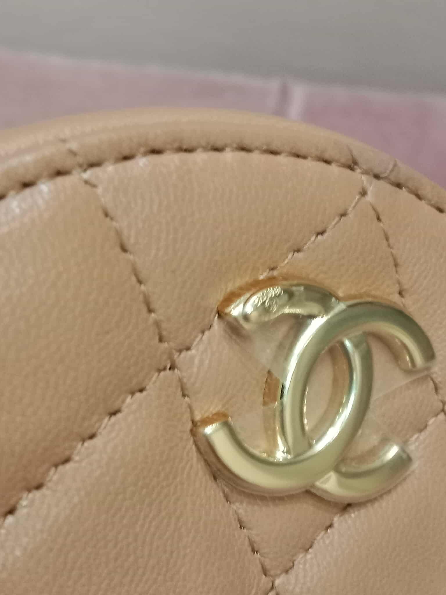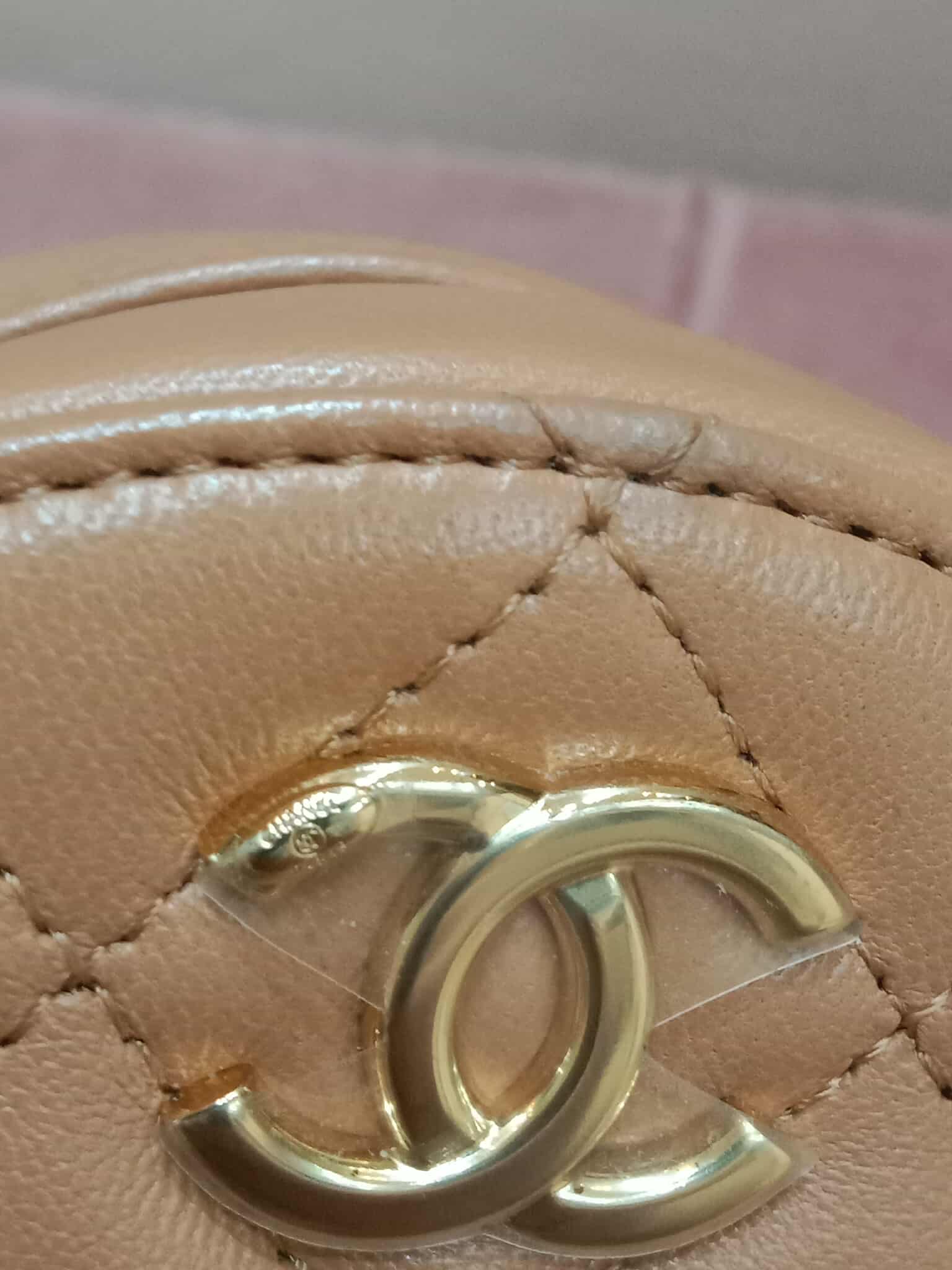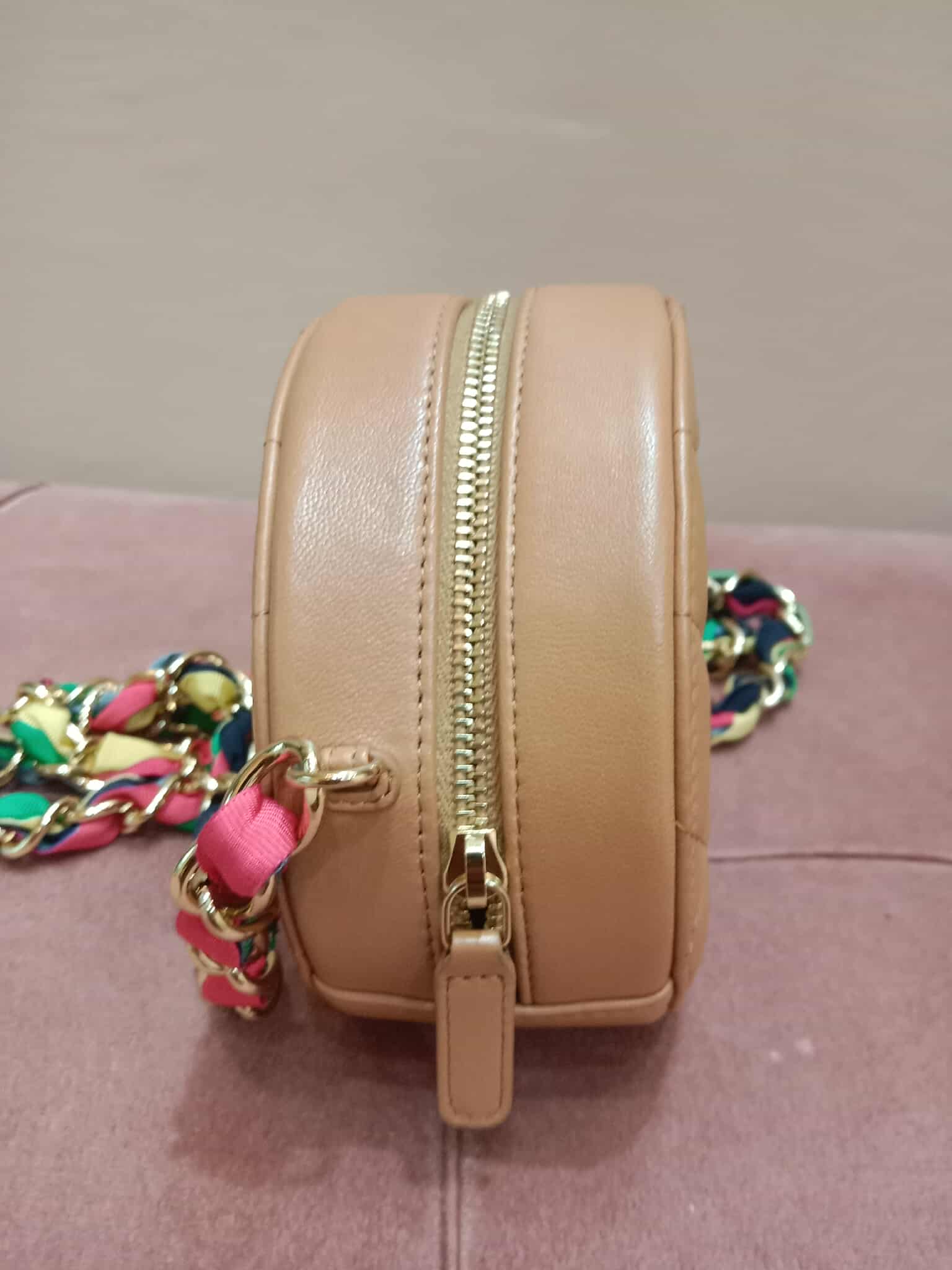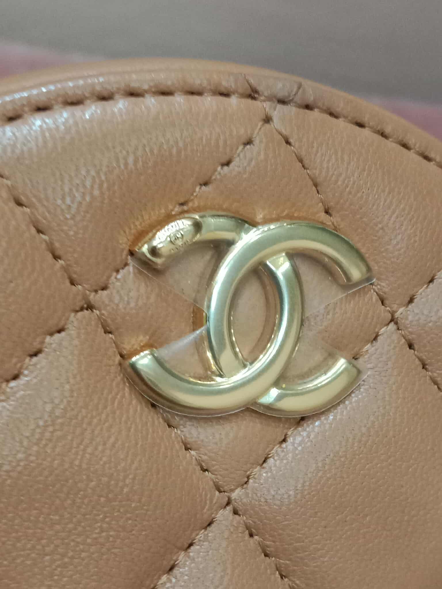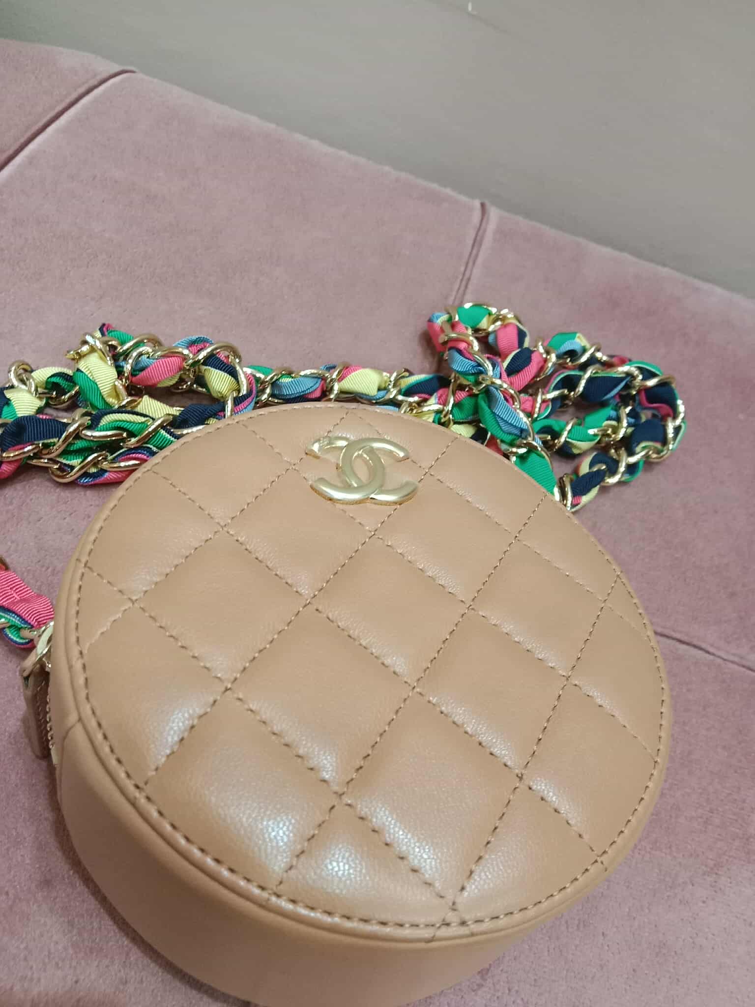Chanel 21P Round Clutch Lambskin with Multicolor Ribbon-Woven Chain Strap Caramel Series 30