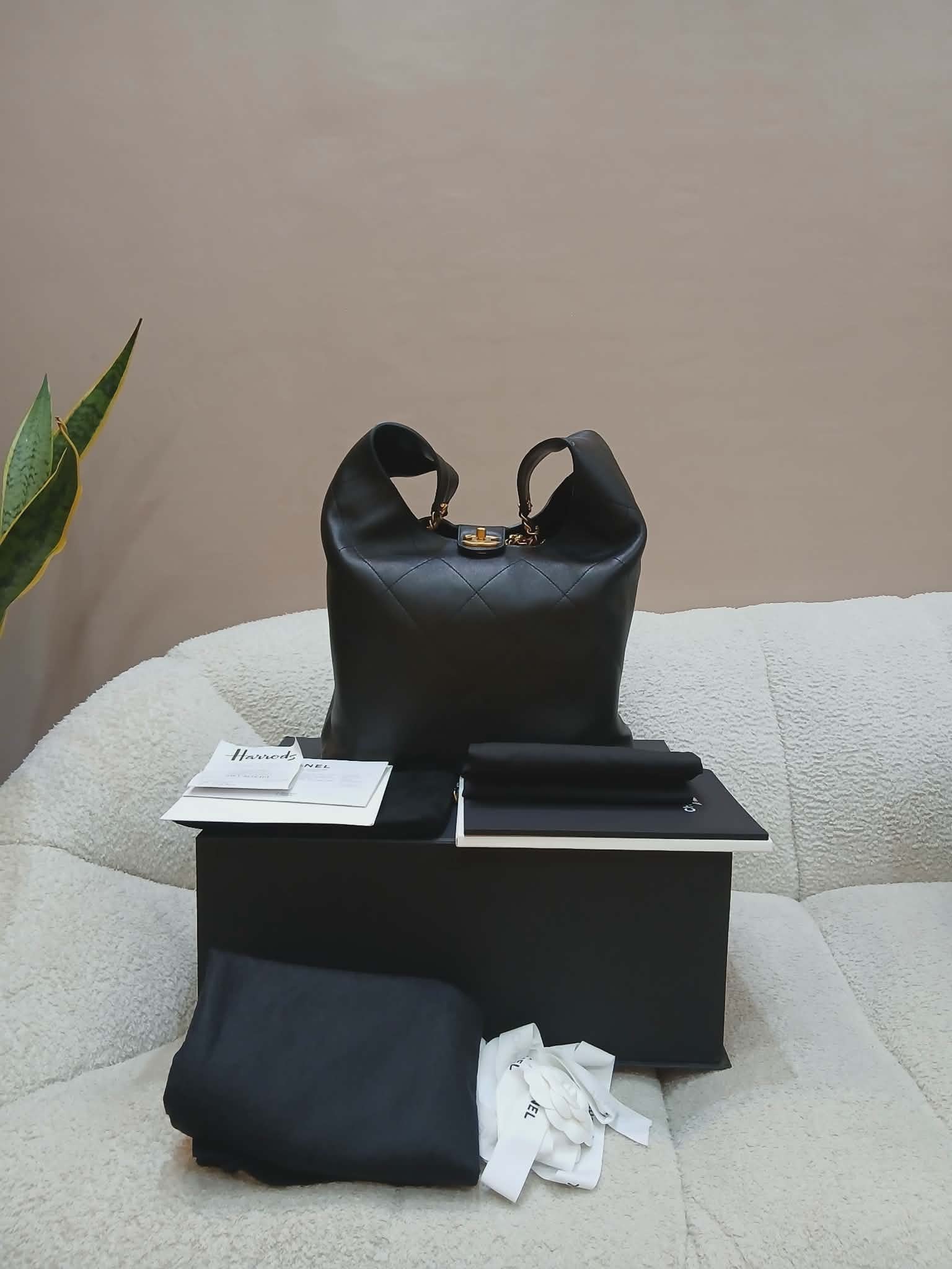 Chanel Hobo Bag Shiny Calfskin Black Microchipped Fullset