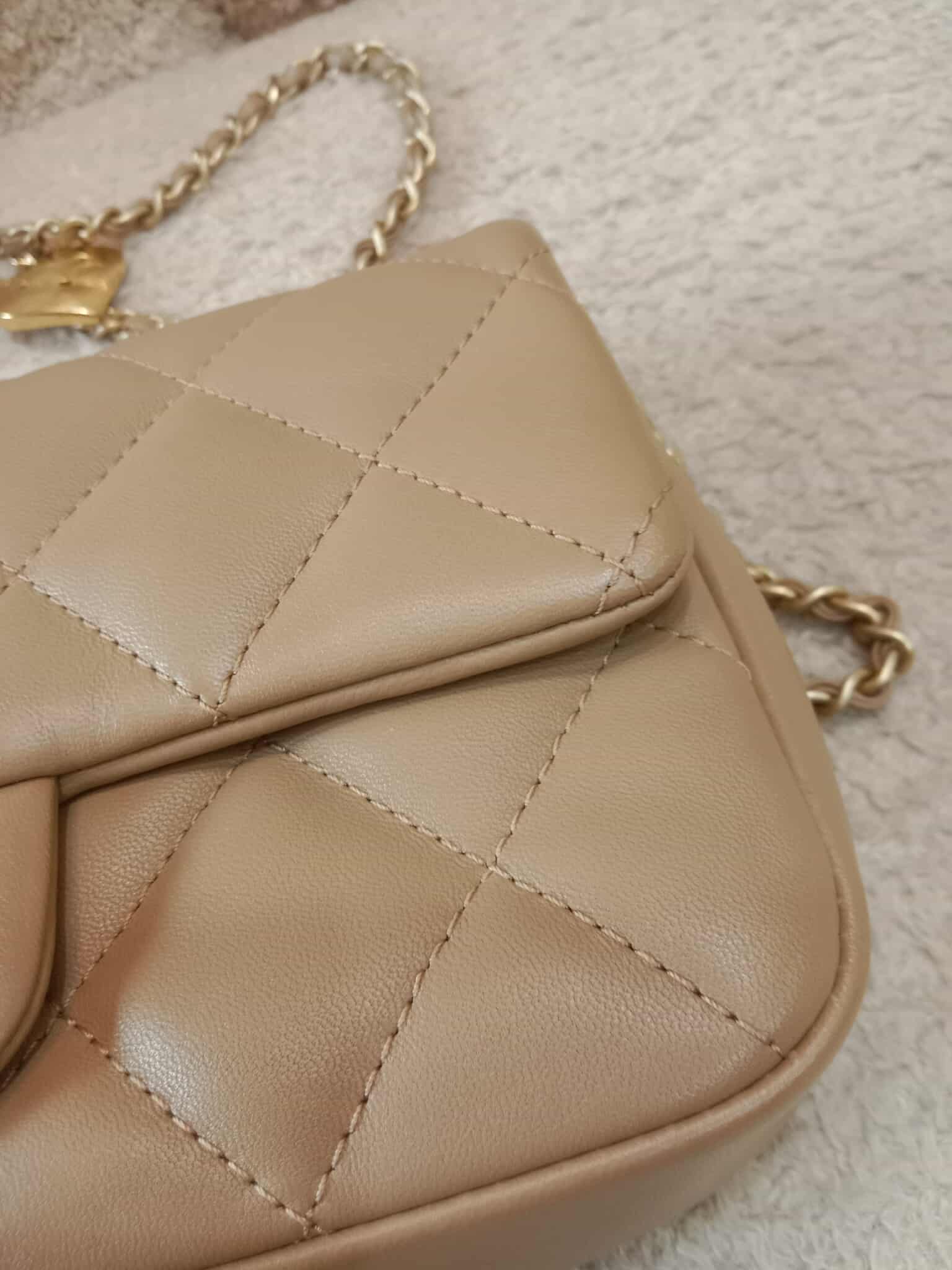 Chanel Seasonal Flap Heart Charms Beige Microchipped