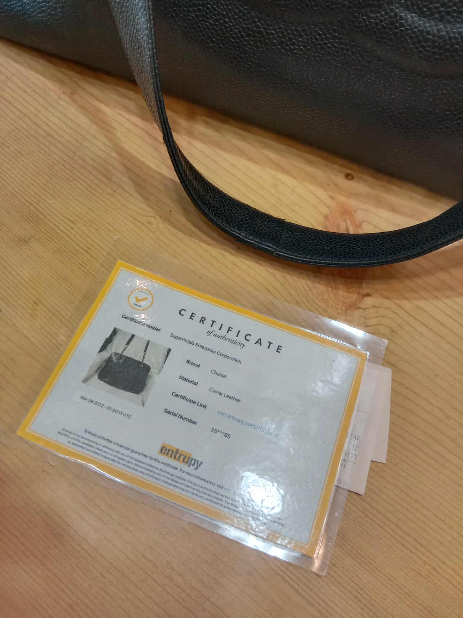 Inclusions Entrupy Certificate, Provided Dustabag, Hologram Sticker