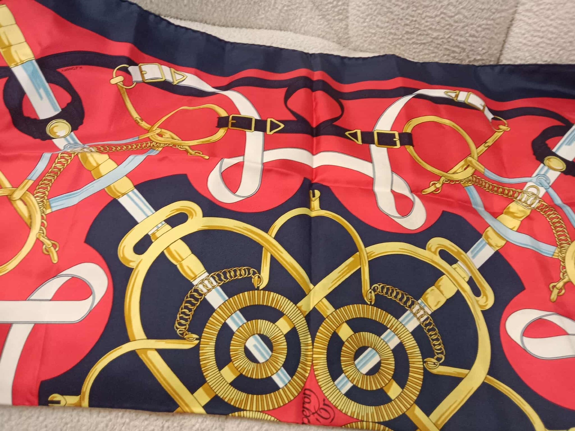 Hermes Carre 90 Eperon Dor Golden Spur Silk Scarf