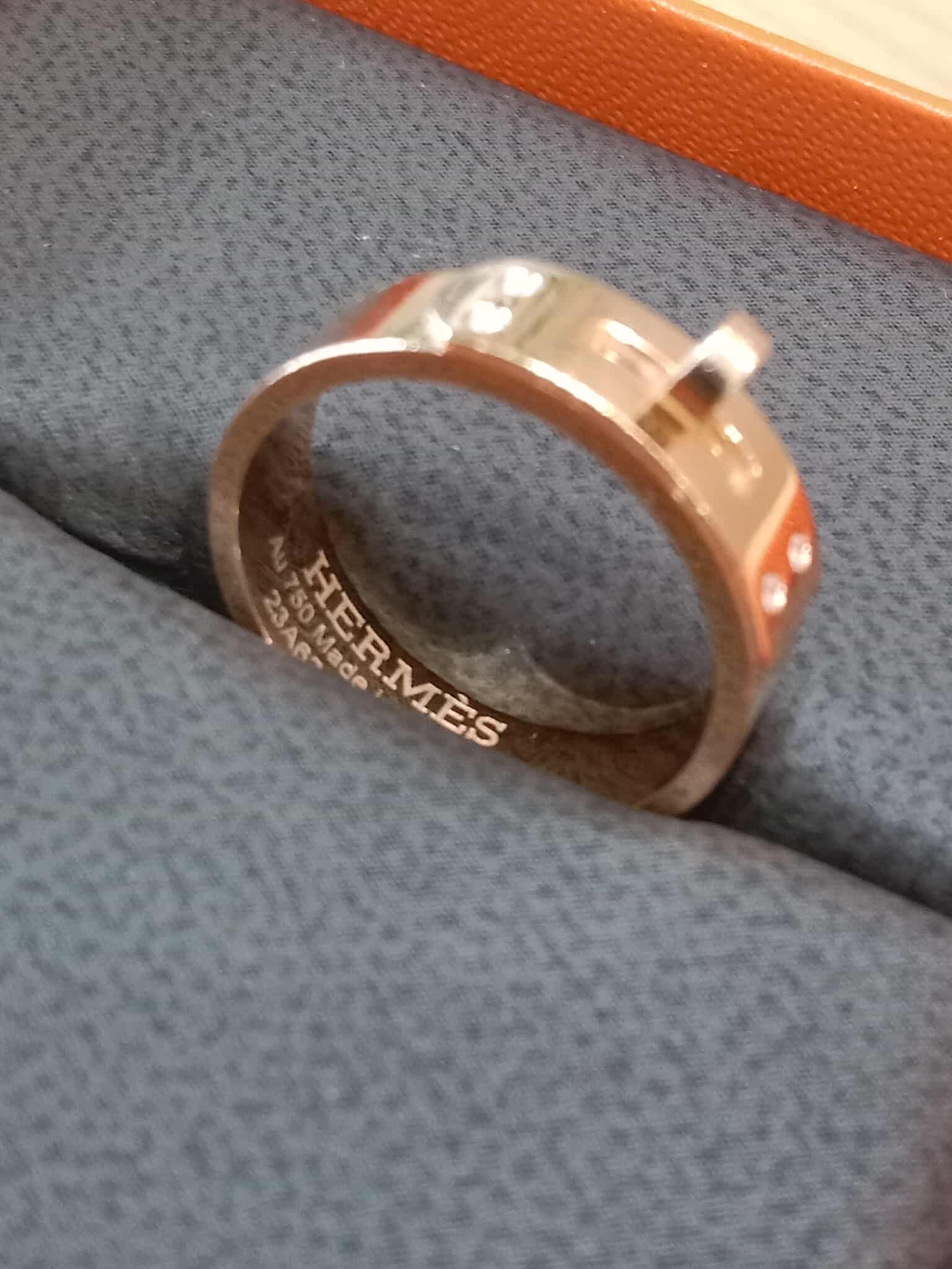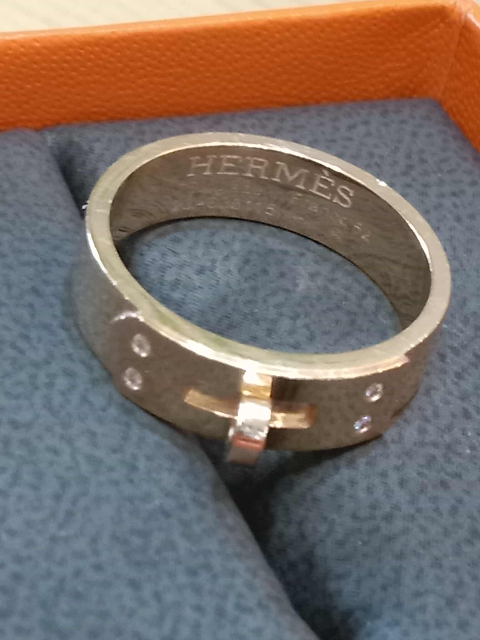 Hermes Kelly Ring in 18K Rose Gold Pave-Set Diamonds on the Clasp Motif