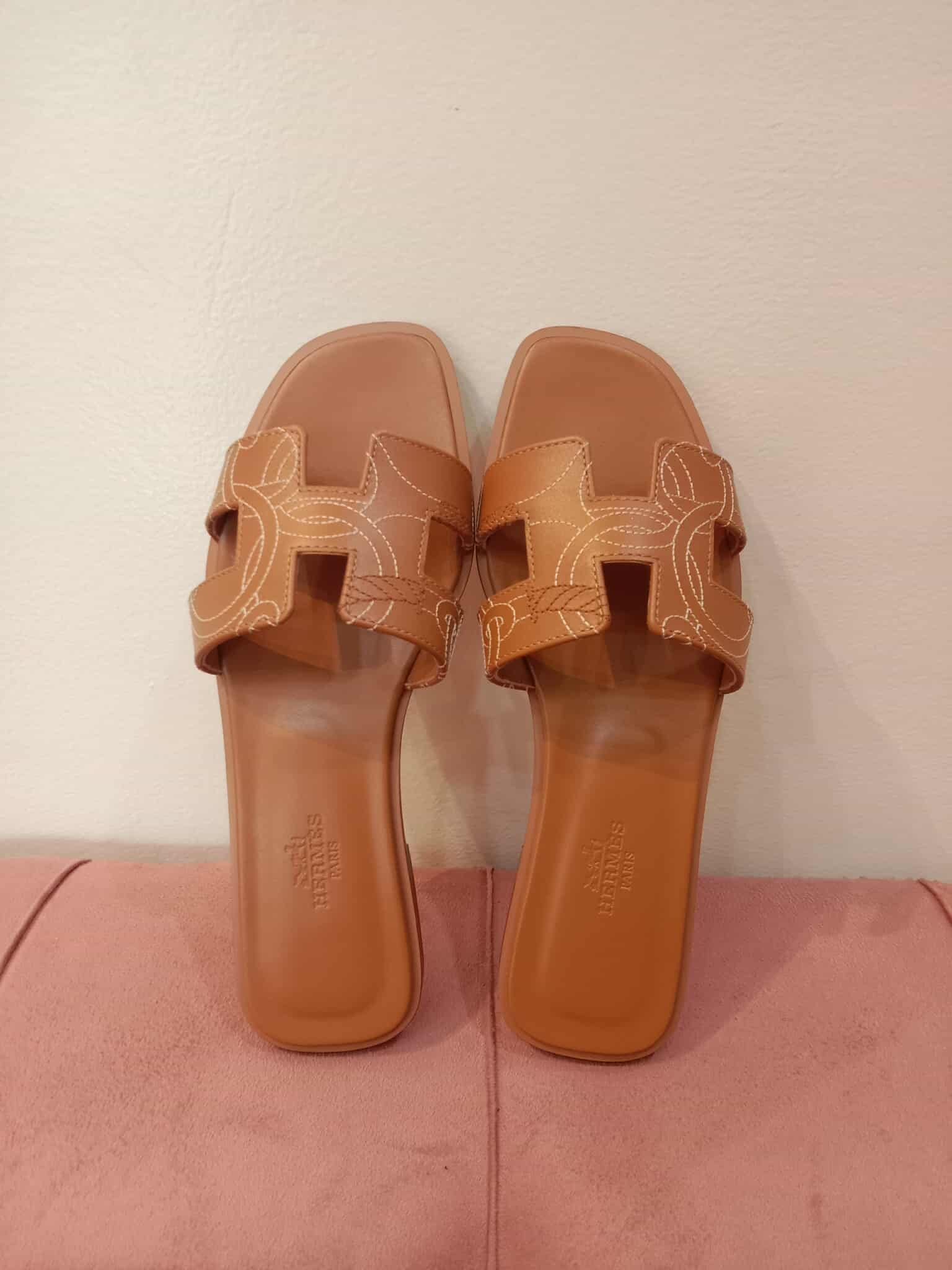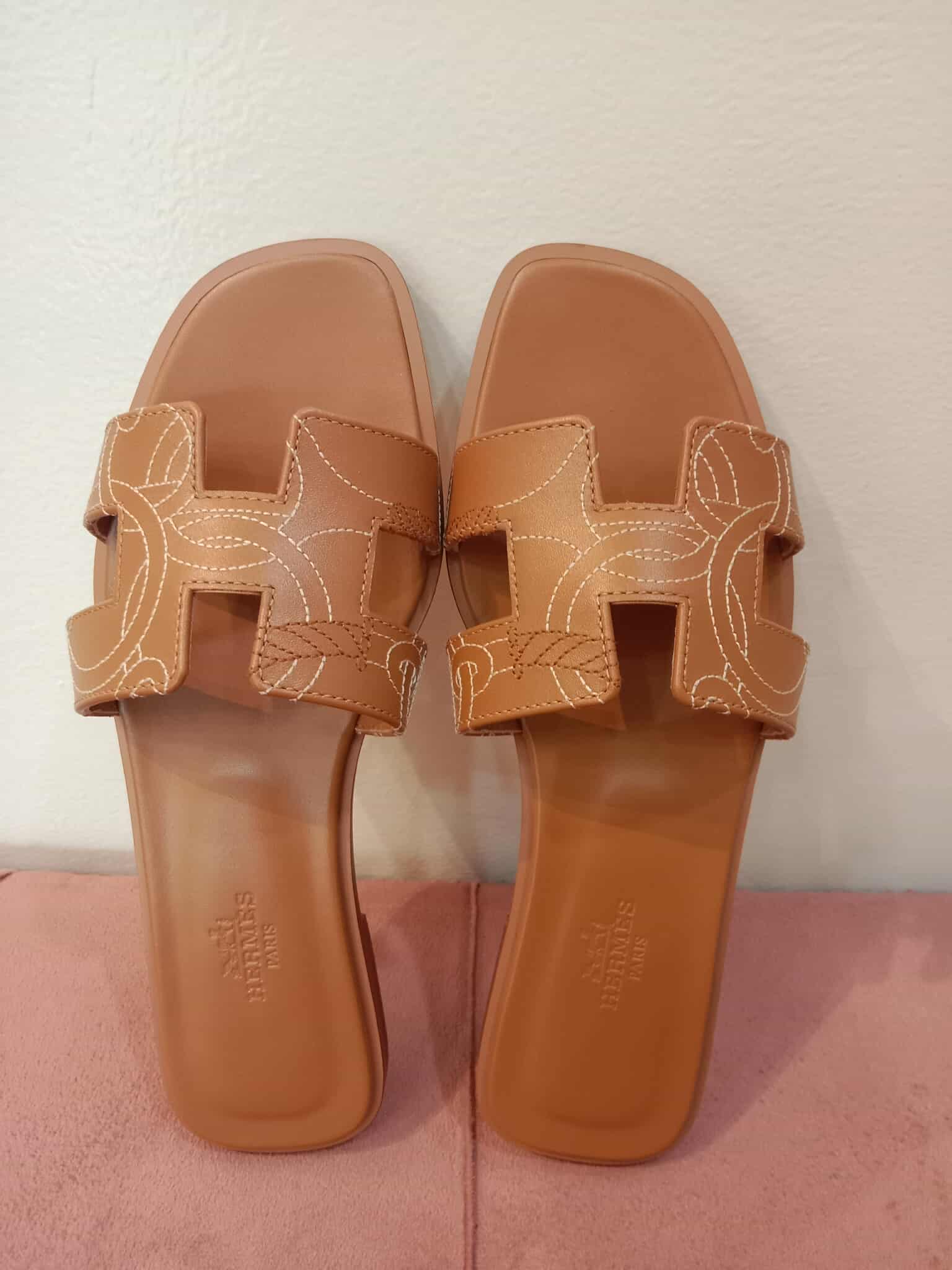 Hermes Oran Panoplie Equestre Embroidered H Gold Size 36.5