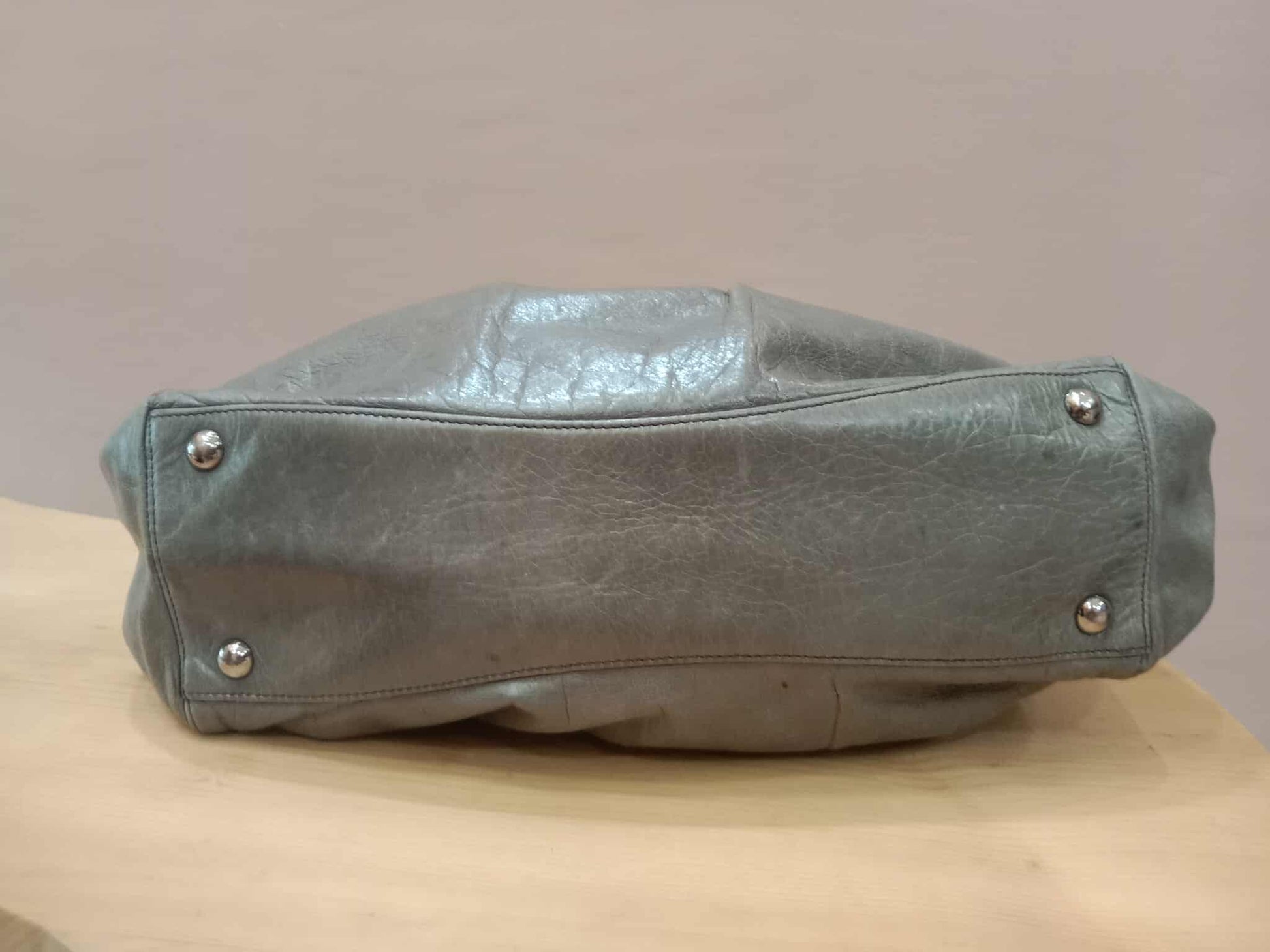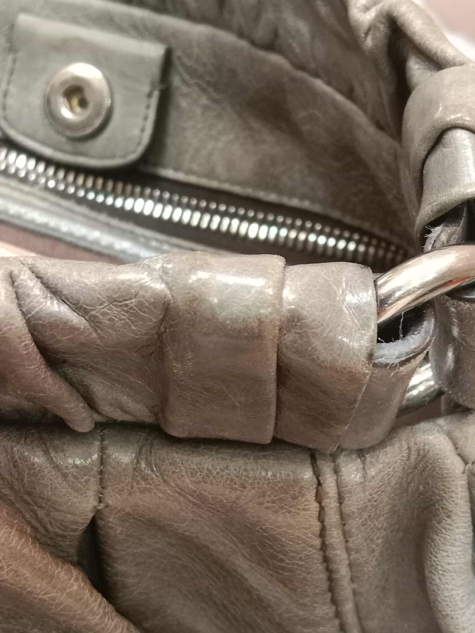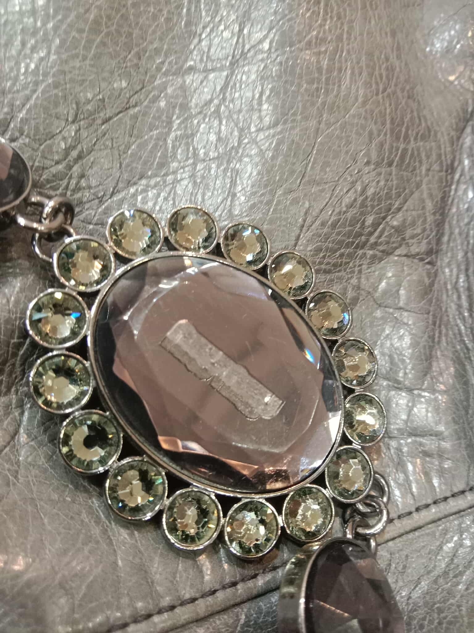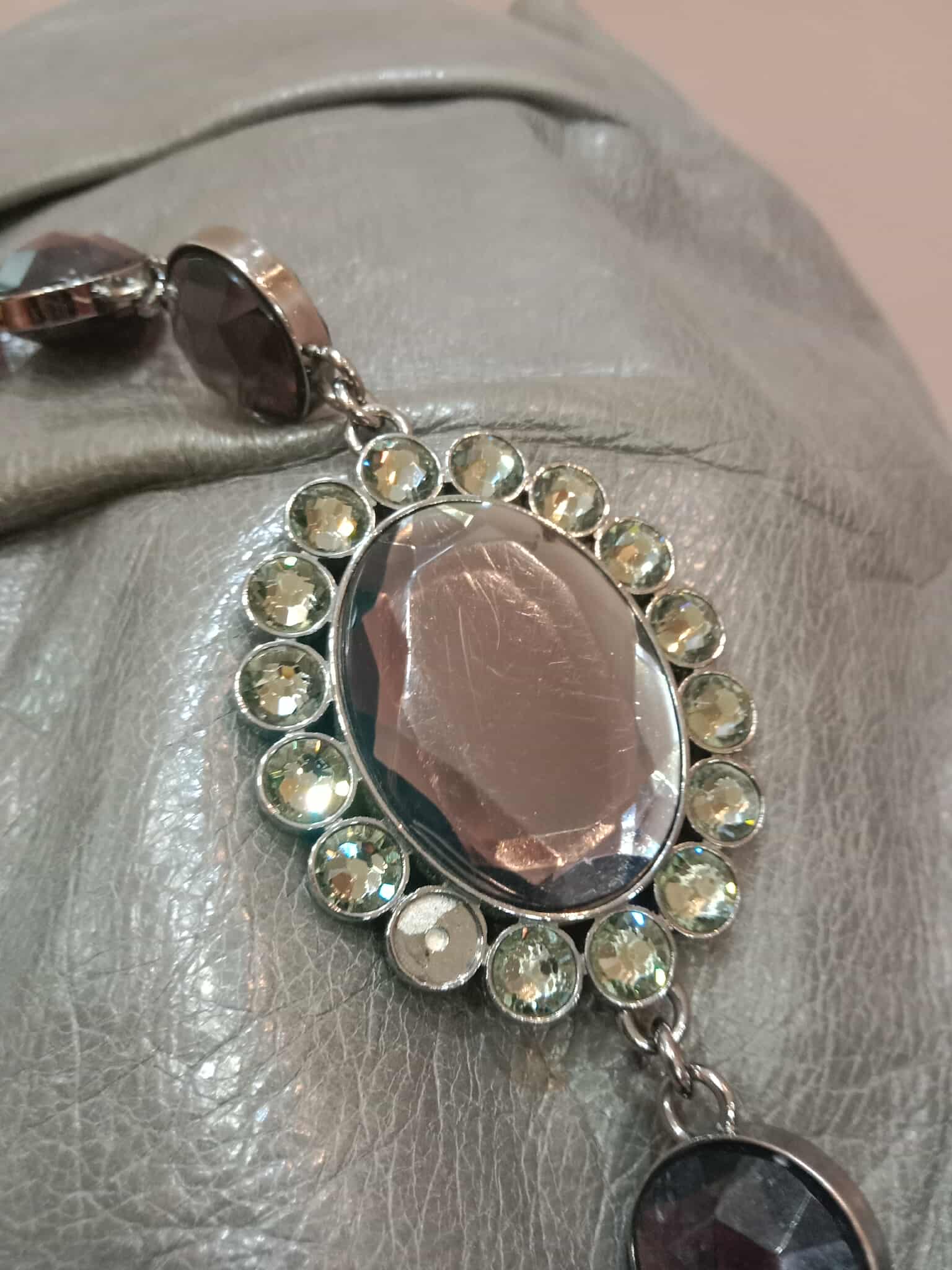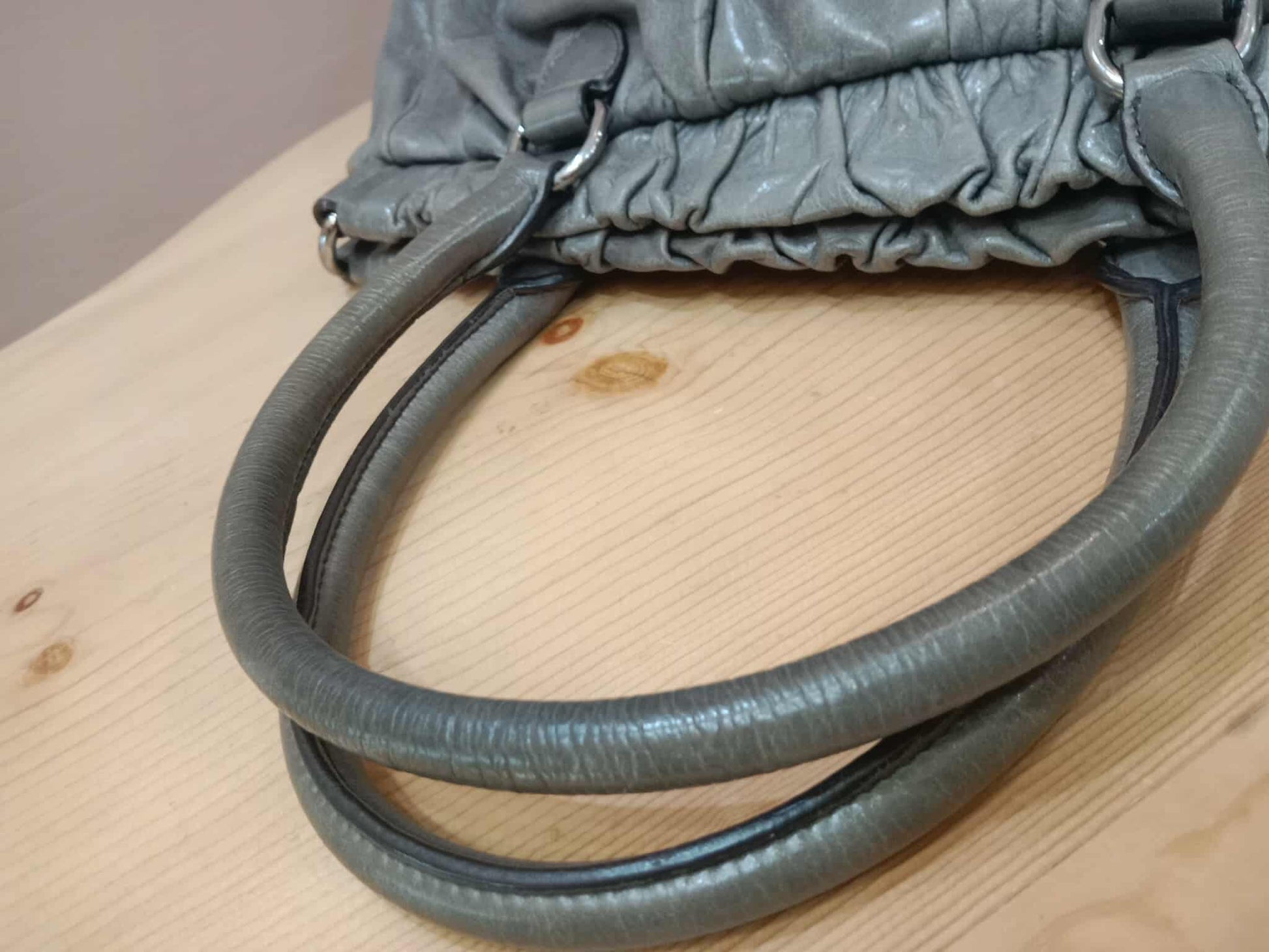 Miu Miu Leather Tote Bag Grey with Crystal Embellished Strap
